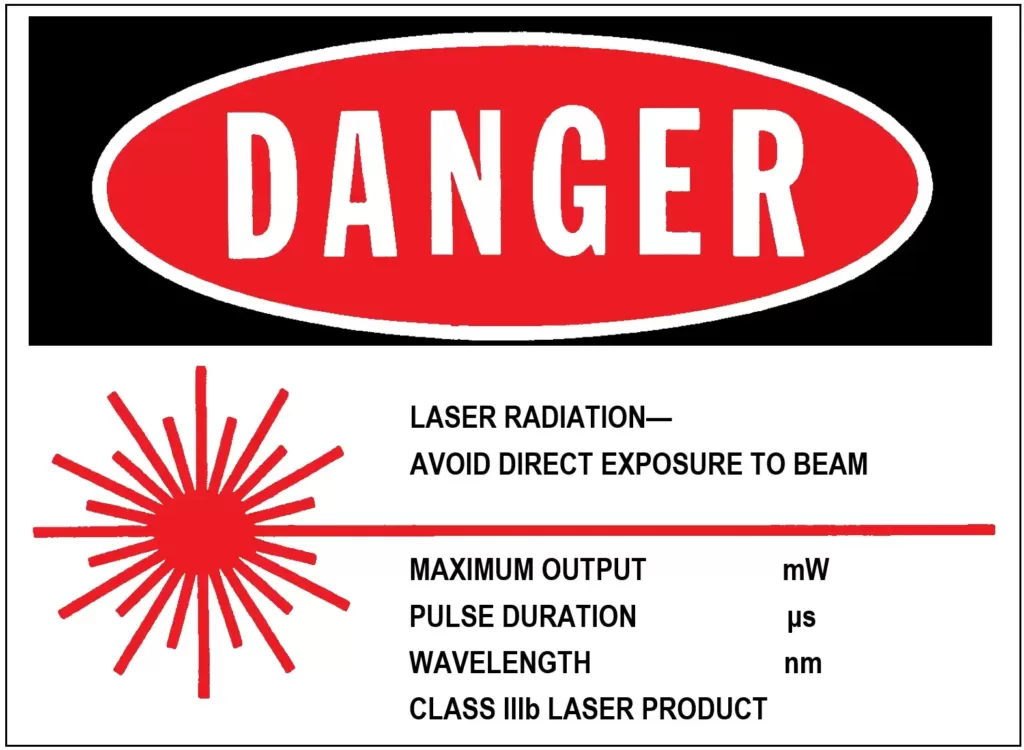 クラス IIIb短時間であっても皮膚や目への直接のばく露は危険とされるレーザ製品。
